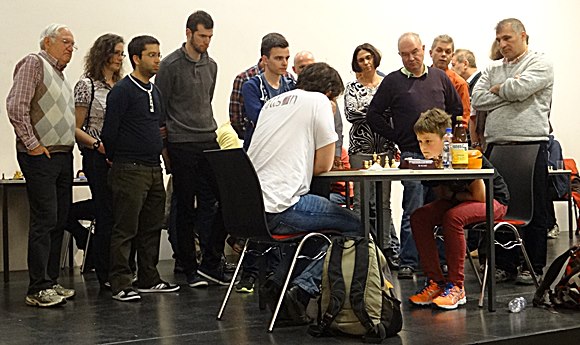 ... die Spannung war riesengroß bei den Zuschauern mit geteilten Wünschen. So kam es meist zu den Reaktionen, die den Vincent unterstützten, aber es ga auch Reaktionen von Titelträgern in der Form: "Der kleine steht auf Verlust und wird verlieren, obwohl später alle Rechner der Welt bei der Analyse mindesten ein kleines Plus für Weiß (Vincent Keymer) anzeigten ...
