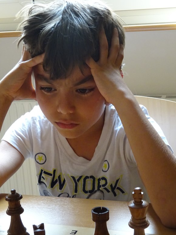 21.06.2015 - Die Turnierteilnehmer der 1.Bad Sodener Jugend-Einzel-Meisterschaft werden immer routinierter und auch die Eltern werden immer termintreuer. Die organisatorischen Kenntnisse der jungen Bad Sodener Mitglieder werden erstaunlich nachhaltig verbessert: Schweizer-System, Auslosungsregeln, Deutsche-Wertungszahl, Basisbedenkzeit mit 60min und additiven 30s pro Zug, wieviel DWZ habe ich gewonnen, wo spiele ich, wann kann ich die nächste Auslosung sehen, welche Farbe habe ich, kann ich gegen Leo kommen, bekomme ich DWZ bei kampflosen Punkten, usw. Die Routine beim Umgang mit der Uhr, Stift hinlegen, suchen nach dem besten Zug, prüfen was der Gegner machen kann oder was er langfristig machen kann, noch einmal Abschlussprüfung, Zug machen, Uhr drücken, Zug aufschreiben, Stift schön hinlegen, auch nachdenken, wenn der Gegner dran ist! Ja, es war der Spieltag der erfahrenen Spieler: Leo Max Deppe siegte gegen den bisherigen Tabellenführer Jan Frederik Werndl mit einer guten Caro Kann-Partie am 1.Brett. Am zweiten Brett spulten die 10-jährigen Kevin Haack und Adam-Kristof Baranyai-Molnar ihre hochdramatische "Italienische Partie" in einem Höllentempo herunter, sodass Sie am Ende mehr Zeit auf der Uhr hatten als vorher: Weiß 1:12h und Schwarz 1:02h. Montags vorher hatten schon die Brüder Boris und Boyan Blagoev sowie Andreas Haller und Frederik Jungblut ihre dritten Punkte eingefahren. Es läuft fantastisch für die Gewinner und noch weniger rund für die Verlierer, aber alle sind mit großem Eifer dabei. Einfach schön, die jungen Cracks!
