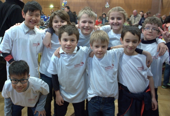 "Hibbdebach-Dribbdebach" - die Phorms-Schule unter der Leitung von Club-Koordinator George Betts hat die Schachaktivitäten in diesem Jahr auf die Grundschule im Campus City in Frankfurt konzentriert, sodass in diesem Jahr ein Team von der Phorms-Grundschule zum Einsatz kam. Mike Rosa leitet die Aktivitäten in Frankfurt Campus City in der "Intensiv" Schach AG und sein Kollege Elmar Kaiser trainiert "Beginner" und "Fortsetzer" im gleichen Haus.