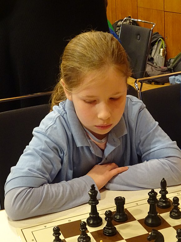 "Hibbdebach-Dribbdebach" - stellvertretend für die Mädchen sei Michelle Lanin genannt, die mit 2 Punkten aus 5 Partien gut abschnitt, wobei Marie-Luise Schiefer mit 2,5 aus 4 Partien und Johanna Wietig mit 2 Punkten aus 3 Partien sich noch besser behaupteten. Der Montessori- und Regelgrundschule-Bereich hatte mit 23 Punkten aus 40 möglichen Punkten und 7:3 Mannschaftspunkte den 5.Platz erreicht und war von allen "Frankfurter" Grundschulen das zweitbeste Team. Klasse!