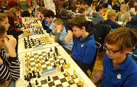 29.02.2016 - Die Coolen, die Besten und die Allerbesten, so bezeichnen sich gerne die Schüler der Schulen, wenn Sie aus mehrzügigen Klassenverbänden kommen. Egal ob das A, B, C oder noch weitere Klassen gibt, wie zum Beispiel in der Anna-Schmidt-Schule aus Frankfurt und Nieder-Erlenbach, an der noch D und F dazu kommen hört man von den Dynamischen und den Fantastischen, denn von den Doofen oder Faulen möchte keiner etwas hören! Hibbdebach gegen Dribbdebach, das zweitgrößte Schulschachturnier in Deutschland ist seit Jahren dermaßen beliebt, sodass es an seine maximalen Platzkapazität gestoßen ist mit 75 Teams und über 600 Schüler in den Klassen "Grundschulen" und "Weiterführenden Schulen 1 und 2". Herzlichen Dank an die Veranstalter Frankfurter Sparkasse 1822 und der Hessischen Schachjugend und natürlich auch an die wettstreitenden Schulen, die eine Menge in "Schach" investieren, um ihr Können auf der großen Bühne zu präsentieren zum eigenen Vorteil. Schach, Musik, Chöre, Orchester, Ballett und Theater kann sich als erweitertes Lernangebot durchaus sehen lassen und wird von Schülern und Eltern hoch geschätzt.