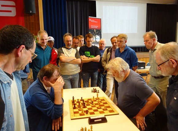Hier holte sich der Fidemeister im 3.Spiel mit Andreas Weber ein Sieg und gab später in der 6.Runde noch ein Kampfremis gegen den anderen Organisator Hans-Walter Schmitt ab.