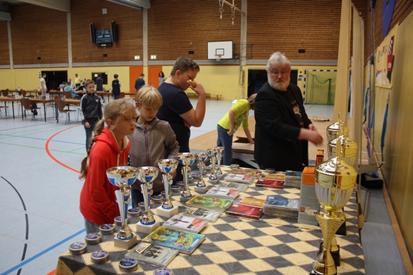 Derweil wurde unter neugierig-kritischer Beobachtung zur besonderen Motivation der Trophäentisch gedeckt