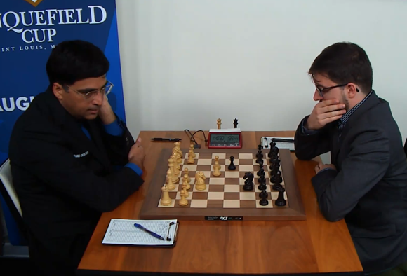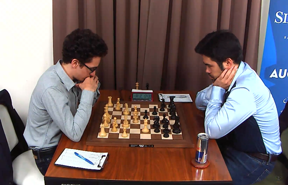10.08.2017 - Vor der finalen Runde am Freitag ist in der heutigen des Sinquefield Cups 2017 fast alles möglich. Die drei Führenden ließen sich nicht dazu hinreißen, mit Gewalt eine Vorentscheidung herbeizuführen. Im direkten Top-Duell konnte weder Viswanathan Anand noch Maxime Vachier-Lagrave einen verwertbaren Vorteil erlangen, was ein Remis nach 30 Zügen bedeutete. Noch kürzer hielten es Co-Leader Levon Aronian und Peter Svidler. Trotz oder eben weil das Brett vor taktischen Möglichkeiten brannte, zogen beide Kontrahenten eine frühe dreimalige Wiederholung der Stellung vor. Dies wiederum hätte Magnus Carlsen die Möglichkeit geboten, mit dem Führungstrio gleichzuziehen, doch der Weltmeister musste eher froh sein, dass Ian Nepomniachtchis Vorteil nicht groß genug für einen vollen Zähler war. Immerhin, so hat der Norweger noch immer die theoretische Chance auf den Gesamtsieg. Das gilt auch für Sergey Karjakin, der als einziger Sieger des Tages mit Carlsen gleichzog. Der russische Vize-Weltmeister fügte Wesley So dessen vierte Niederlage zu und darf somit auch noch auf den Turniersieg hoffen. Und auch Fabiano Caruana hatte realistische Aussichten, sich der Verfolgergruppe anzuschließen, aber nach einem Fehler von Gegner Hikaru Nakamura griff er etwas zu optimistisch an und lief in einen Remiskonter seines Landsmannes. Doch auch mit fünf möglichen Siegern verspricht die Finalrunde Hochspannung und beste Aussichten für all die Fans, die sich für Samstag einen packenden Tiebreak wünschen.