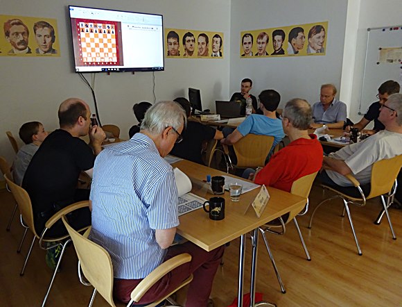 18.06.2018 - Zum ersten Mal wurde das Thema: - Verbesserung des strategischen Verständnisses - mit klassischen Partien aus den Jahren 1940 - 1970 - analysiert, um die tiefe Strategie nicht nur in den Eröffnungsphasen des Schachspiels zur eigenen Verbesserung der Entwicklung des Verständnisses für das Schach voranzubringen. Die Entwicklung das Schachs, deren Eröffnungen und deren Varianten, die schon Jahre her sind bringt das strategische Verständnis von jungen Schachspielern kontinuierlich zu einem höheren Niveau! Es ist wichtig, - Alte Meisterpartien - zu studieren und das Verstehen der Partieverläufe zum Standard und Inventar der Ausbildung zu machen - gerade für junge Schachspieler! Angeführt vom Deutschen Meister U10, Bennet Hagner, Daniel Elias Ochs, den U12ern Kevin Haack, Diyor Bakiev, Jonas Riemann und den U18er Maximilian Walk, Frederik Stobbe, Ruben Rittberger und Leo Max Deppe stellten aufstrebende Jugendspieler die Hälfte der Teilnehmer in diesem Seminar. Selbst Großmeister Michael Prusikin und der Chess Tigers Vorsitzende Hans-Walter Schmitt waren begeistert von der Intensität und Effektivität der zweitägigen (effektiv 12 Stunden) Veranstaltung. Sollten die jungen Schachspieler es wünschen, werden die Chess Tigers mit ihrem Haupttrainer FM Christian Schramm mittwochs eine Vierer-Trainingsgruppe einrichten, um das Vorankommen der Talente zu Dynamisieren und zu Systematisieren.