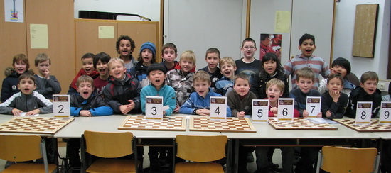 Siegerehrung: 1. Jan Frederik W. 7/7, / 2. Christian H. 6/7, 3. Ha-Young M. 5/7, 4. Lukas B. 5/7, 5. Per M. 4,5/7, 6. Patrick, F. 4,5/7, 7. Alexander B. 4,5/7 8. Filip St. 4,5/7 und 9. Melih Ü. 4,5/7