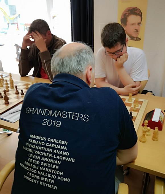 28.05.2019 - We are Europe! Wahlhelferverpflichtung, Auslandsreise Bulgarien und Tennis-Medenspiele dezimierten das Team des SC Bad Soden 1 nicht stark genug, um chancenlos ins entscheidende Relegationsspiel gegen den Verbandsligisten Marburg 2 zu gehen. Mit den Ersatzleuten Thomas Rödiger (Team 2), Hans-Walter Schmitt (Team 5) und Robert Ackermann (Team 2) wurde in der "B9" im Traning Center der Chess Tigers der Kampf an- und aufgenommen. Die Stammspieler Stefan Erdmann, Dr. Radu-Liviu Munteanu, Ulf Schlanke, Kevin Haack und Leo Max Deppe sollten genug Kampfgeist und Erfahrung mitbringen, um das "Kind" schon zu schaukeln. Dass wieder einmal der Spruch herhalten musste, dass "Ein gutes Pferd nur so hoch springt, wie es muss" grenzt nach dem knappen Aufstieg von Team 5 in der Saison 2018/19 ein bisschen an Legendenbildung! Ja, es war ein erfolgreicher Ritt auf der Rasierklinge, nachdem an Brett 7 - Hans-Walter - mit einem groben Figureneinsteller im 17.Zug in Gewinnstellung (+1,8) die Partie nach gut eineinhalber Stunde schon aufgeben musste! Shit happens!