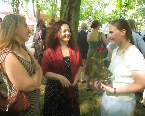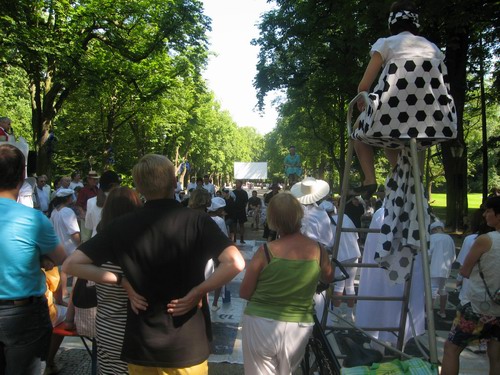 Liebe Leser, da Sie alle technischen Informationen auf der Internetseite des Veranstalters Deutscher Schachbund, Parkhotel Bad Homburg, SK Bad Homburg und Quens-Chess ausführlich nachlesen und typische Schachbilder in Hülle und Fülle bestaunen, bzw. alle Partien, oft schon kommentiert in umfangreicher Form genießen können, möchte ich mich auf dem Spaziergang bei 37 Grad im Schatten durch den herrlichen Kurpark mit seinen modernen Skulpturen und beeindruckender Natur - zur Siegerehrung und Lebendschach - auf Bilder beschränken. Auf dem Weg zurück zum Parkhotel gelangen dann auch noch ein paar Schnappschuesse von starken Frauen in Weiß und Schwarz, wobei nicht nur das Schach im Mittelpunkt stand, sondern wieder einmal die anregende Kunst zu Handlungen am starken Geschlecht führte.