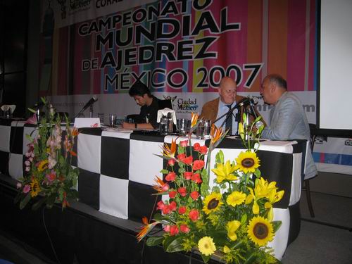 Nachfolgend ein paar Bilder (Appetithappen) einer großartigen Schach-Weltmeisterschaft in Mexiko-Stadt, verbunden mit der Hoffnung, dass Anand und Kramnik, die Herren Organisatoren Jorge Saggiante und Paul German unsere Einladung annehmen werden vom 21.Juli bis 28.Juli 2008 nach Mainz am Rhein zu kommen. Die Einen, um Hochleistungsschach in Viererturnieren zu zeigen und die Anderen, um es zu erleben und zu geniessen. Herzlich Willkommen!