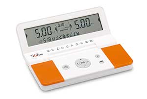 Der Zeitmodus lässt sich leicht mit der Plus- und Minus-Taste verstellen. Man kann eine feste Bedenkzeit pro Zug festlegen, die sich mit jeder Uhrbetätigung wieder erneuert. Zudem gibt es die Möglichkeit, eine Bonuszeit, das so genannte „increment“, festzulegen. Eine weitere Möglichkeit ist das bei Turnieren eher unübliche „delay“, das den Beginn des Zeitablaufs nach dem Drücken der Uhr verzögert. Auch während der Partie lässt sich die Zeit nach Belieben um-, vor- oder zurückstellen. Die Einstellungen werden gespeichert und stehen bei einem späteren Gebrauch wieder zur Verfügung.