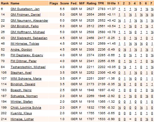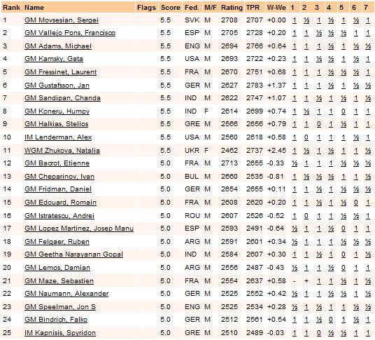 02.02.2010 - Nach 7 von 10 Runden beim 8. Gibtelecom Masters haben sich nicht weniger als elf Spieler an die Spitze der Gesamtwertung gesetzt. Neben den üblichen Verdächtigen Sergei Movsesian (2708), Francisco Vallejo Pons (2705), Michael Adams (2694) und Gata Kamsky (2693) erregt besonders die Leistung von Natalia Zhukova (2462) Aufsehen. Viel besser könnte es aktuell auch ihr Gatte Alexander Grischuk nicht machen. Gestern remisierte sie gar gegen Michael Adams und heute wird sich Jan Gustafsson (2627) - ebenfalls in der Spitzengruppe - mit der schönen Ukrainerin messen müssen. Der Deutsche schlägt sich bisher ebenfalls prächtig. Gegen höher oder gleich geratete Gegner remisiert er bisher sicher und niedrigere ELOs kassiert er gekonnt ein. Auch nur einen halben Zähler weniger weisen derzeit Daniel Fridman, Alexander Naumann, Falko Bindrich und Michael Hoffmann auf und sind damit ebenfalls noch gut im Rennen. Zumal es heute zum Duell Fridman gegen Hoffmann kommen wird, sodass mindestens ein Deutscher - komme was wolle - punkten wird.