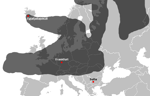 Genau um 13:05 Uhr (UTC+1) am 16. April sollten wir per Lufthansa LH 3484 von Frankfurt aus Sofia erreichen. Wir reisten aus Madrid an. Aufgrund eines Vulkanausbruchs wurden ab dem 16. April leider alle Flüge abgesagt, wie es in den meisten europäischen Städten der Fall ist. Daher können wir aus Gründen, die nicht unter unserer Kontrolle sind, Sofia nicht wie geplant am 16. April 2010 erreichen.