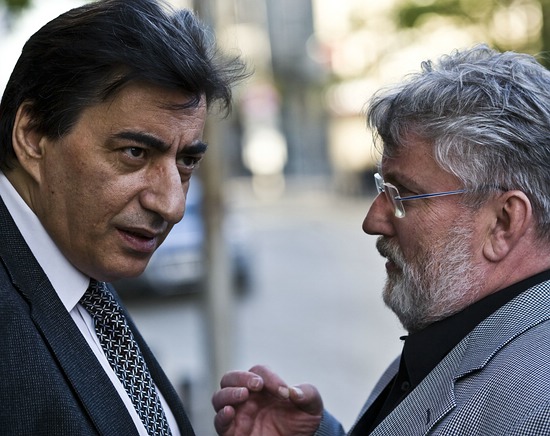 Fide-Vize Präsident Georgios Makropolous erklärt Anand-Delegationsmitglied Hans-Walter Schmitt, wie die Remisangebote stattzufinden haben. Oder doch eher umgekehrt ... ?