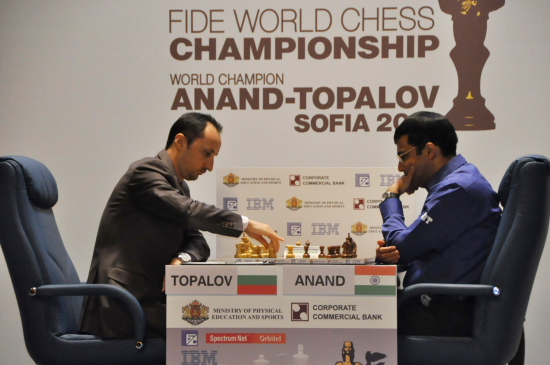 27.04.2010 - Vor der heutigen dritten Partie der Schachweltmeisterschaft 2010 in Sofia gab es keine interessantere Frage als die nach der Eröffnung, welche Weltmeister Viswanathan Anand wohl wählen würde. Jetzt wissen wir es, es gab keine Neuauflage im Grünfeldinder, denn Anand entschied sich für die solidere Slawische Verteidigung. Nach frühem Damentausch versuchte Veselin Topalov sein Bestes, am Damenflügel entscheidende Fortschritte zu machen, doch Anand war stets Herr der Lage und verteidigte sich tadellos. Unter dem Strich steht nach .. Zügen ein gerechtes Unentschieden, welches Anand die Möglichkeit bietet, morgen mit den weißen Steinen seinerseits auf die Führung in der WM zu spielen. Wie nicht anders zu erwarten, bot keiner der beiden Kontrahenten in dem völlig "toten" Turmendspiel die Punktteilung an, stattdessen wiederholte man drei Mal die Stellung.