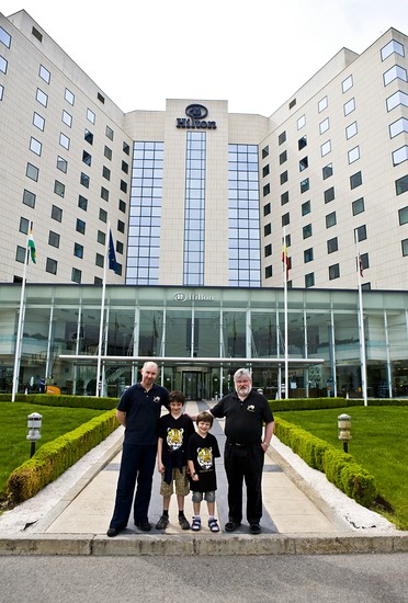 Vorm Hilton Sofia: Chess Tigers on Tour v.l.n.r.: Eric van Reem, Felix und Moritz Bossert und Hans-Walter Schmitt