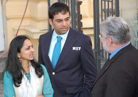Vishy Anand mit Ehefrau Aruna und Freund Hans-Walter