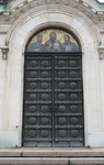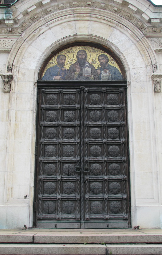 Die Auswahl der elften Tür der Alexander Newski Kathedrale zeigt auf dem den linken Eingang drei Heilige.