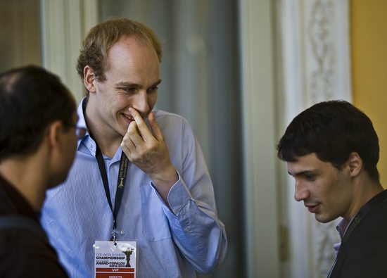 Die Topalov-Sekundanten GM Jan Smeets und GM Ivan Cheparinov frohen Mutes