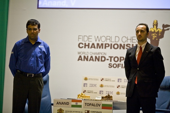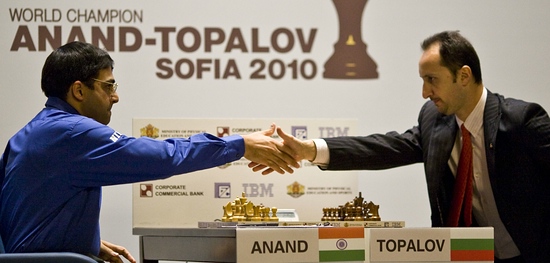 Der indische Weltmeister Vishy Anand wollte heute seine dritte und letzte Gewinnpartie erreichen, leider ging das Vorhaben nur zur Hälfte in Erfüllung, allerdings mit einer gehörigen Portion Risiko und mutigem Weiterspielen bis zum möglichen Dauerschach. Im Übrigen nahm der Herausforderer Topalov das Remisangebot von Weltmeister Anand an, ohne die Schiedsrichter zu konsultieren. Eine kleine diplomatische Geste, die sicher nicht mit Manager Silvio Danailow abgestimmt war, aber Hoffnung auf Normalität gibt. Mögen sich Kramnik und Topalov auch wieder aussöhnen, damit die nacheifernde Jugend, sich das "Nicht-Hände-geben" nicht auch noch zum Vorbild nimmt.
