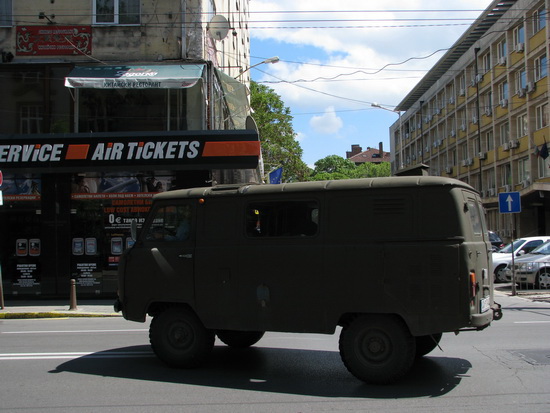 ... von aufmerksamen Polizisten wird der Verkehr geregelt, genauso wie die tägliche Anreise der Spieler zum Milittary Club in Sofia
