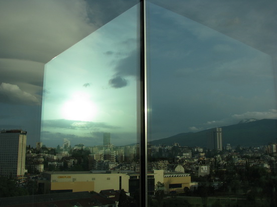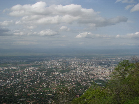 Sofia liegt in der Sofiaebene, einer weiten Hochebene im Westen des Landes, nahe der Grenze zu Serbien. Fünf Bergpässe führen in die Ebene und somit nach Sofia - der Iskar-Pass, der Wladaja-Pass, der Dragoman-Pass, der Petrochan-Pass und der Botewgrad-Pass. Die Stadt befindet sich am nördlichen Hang des 2290 m hohen Witoscha-Gebirges, das ein beliebtes Ausflugsziel der Sofioter ist und die Kulisse der ganzen Stadt beherrscht. Die Grundform des Witoschagebirges ist fast kreisrund mit einem Durchmesser von etwa 15 km. Im Westen grenzt die Stadt an das Ljulin- und Losen-Gebirge. Sofia mit Witoscha-Gebirge im Hintergrund, Im Norden und Nordosten verlaufen in ungefähr 50 Kilometer Entfernung das Sofia- und das Murgasch-Gebirge, die Teil des Balkangebirges sind, das in Ost-West Richtung durch ganz Bulgarien verläuft und das Land in eine Nord- und eine Südhälfte teilt. Dieses Gebirge ist der Namensgeber für die gesamte Balkanhalbinsel. Durch die östlichen Stadtviertel fließt der längste Fluss Bulgariens, der Iskar. Auch zwei seiner Zuflüsse, der Perlowska und Wladajska durchqueren die Stadt, sind im Stadtbild aber kaum zu sehen. Im Zentrum Sofias, wie in den Stadtvierteln Owtscha Kupel, Knjaschewo, Gorna Banja und Pantscharewo existieren Mineralquellen, deren Benutzung seit der Antike nachgewiesen ist. (Quelle: Wikepedia)