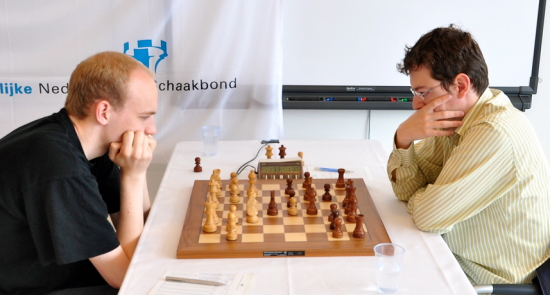 Eindhoven (NED) - Nachdem Zhaoqin Peng bereits frühzeitig bei den Frauen ihre Dutch Championship 2010 gewonnen hatte, sieht es nun so aus, als sei bei den Männern eine Runde vor dem Ende ebenfalls die Vorentscheidung gefallen. Jan Smeets zeigte ausgerechnet gegen seinen Sekundanten-Kollegen des Teams Topalov, Erwin L'Ami, dass er doch ein Kämpfer sein kann und rang seinen Gegner in einem schwierigen Endspiel nieder. Der Sieg dürfte für ihn doppelt süß gewesen sein, denn zuvor hatte Hauptkonkurrent Anish Giri deutlich gegen Loek van Wely verloren. Theoretisch können Giri und Ernst in der morgigen Schlussrunde noch mit Smeets gleichziehen, aber es ist doch recht unwahrscheinlich, dass dieser ausgerechnet gegen Tabellenschlusslicht Robin van Kampen verlieren wird.