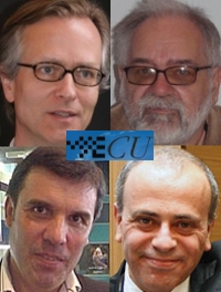 Großes Sesselrücken oder viel Lärm um nichts? Nicht nur das Amt des FIDE Präsidenten ist in diesem Jahr heiß umkämpft, auch auf europäischer Ebene, genauer gesagt bei der European Chess Union (ECU), wird Anfang Oktober um den Vorsitz gerungen. Neben Amtsinhaber Boris Kutin (Bild oben rechts) streben gleich noch drei andere hochkarätige Kandidaten nach Amt und Würden. Da wären der Präsident des Türkischen Schachverbandes Ali Nihat Yazici (unten rechts), dann Silvio Danailov (unten links), welcher beispielsweise Top GM Veselin Topalov als Manager dient und nicht zuletzt der Präsident des Deutschen Schachbundes Prof. Dr. Robert Klaus von Weizsäcker (oben links).