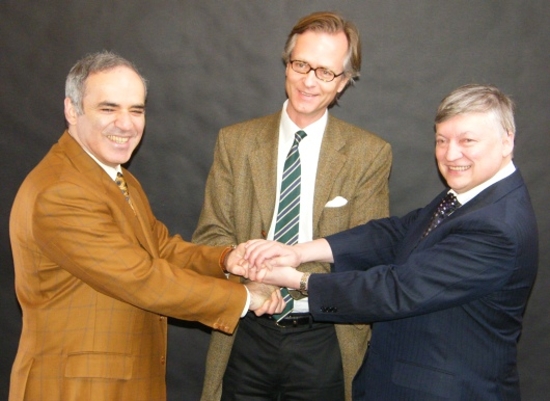 Schachpolitisches Dreigestirn der Extraklasse - Weltmeister Garry K. Kasparov, Prof. Dr. Robert K. von Weizsäcker und Weltmeister Anatoly Y. Karpov