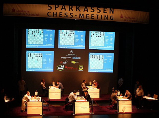 Dortmund (GER) - Ab heute und bis zum 25. Juli findet wieder Deutschlands stärkstes Großmeisterturnier statt. Das Sparkassen Chess-Meeting um Veranstaltungsleiter Gerd Kolbe und Turnierdirektor Stefan Koth hat auch in diesem Jahr wieder ein Top Turnier der Kategorie 20 anzubieten. Gespielt wird ein doppelrundiges Rundenturnier mit sechs Top-Großmeistern. Die Bedenkzeit beträgt 100 Minuten/40 Züge + 50 Minuten/20 Züge + 15 Minuten + 30 Sekunden/Zug ab dem erstem Zug. Rundenstart ist täglich um 15:00 Uhr, außer am 20. Juli, denn dann ist der einzige Ruhetag. Die letzte Runde wird bereits um 13:00 Uhr beginnen. Die Live-Übertragung ins Internet erfolgt mit einer Verzögerung von 15 Minuten. Neben diesem Versuch, so einen möglichen Betrug zu verhindern, wird erstmals auch konsequent die berüchtigte "Sofia-Regel" angewendet. Demnach ist es den Spielern untersagt, ohne Absprache mit dem Schiedsrichter, ein Remis zu vereinbaren.