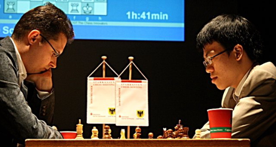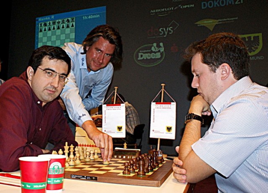 Dortmund (GER) - Jetzt hat es beim Sparkassen Chess-Meeting auch den letzten Ungeschlagenen erwischt. Shakhriyar Mamedyarov unterlag in einer hochklassigen Partie Ruslan Ponomariov. Der ukrainische FIDE-Weltmeister von 2002 konnte als Weißer ein materiell zwar gleiches, aber positionell für ihn sehr vorteilhaftes, Endspiel herbeiführen, in welchem der Aseri nach 51 Zügen bei noch immer gleichem Material entnervt die Waffen streckte. Somit ist klar, dass Ponomariov wieder die alleinige Führung inne hat, aber ein weiterer Teilnehmer machte heute besonders auf sich aufmerksam. Liem Quang Le konnte seine zweite Partie in Serie gewinnen und das mit den schwarzen Steinen gegen einen der solidesten Spieler der Welt, nämlich Peter Leko. Somit liegt der Vietnamese bei seinem ersten Top Turnier nach fünf Runden punktgleich mit Mamedyarov auf dem geteilten zweiten Rang. Bei dem Hin und Her an der Tabellenspitze bot sich sowohl für Vladimir Kramnik als auch seinem heutigen Gegner Arkadij Naiditsch die Gelegenheit, mit einem Sieg Boden gut zu machen. Zum Leidwesen des Deutschen, war es der 14. Weltmeister, der letztlich den vollen Punkt einfuhr und so seine Chancen auf den zehnten Titel in Dortmund verbesserte.
