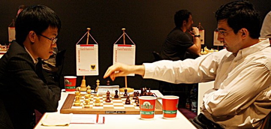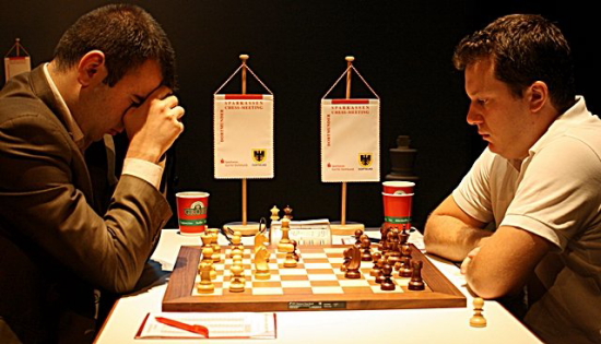 Dortmund (GER) - Bisher hatte Arkadij Naiditsch das Glück wahrlich nicht gepachtet, doch in der heutigen sechsten Runde war endlich auch mal die deutsche Nummer 1 an der Reihe. Nach wechselhaftem Partieverlauf landete man im 35. Zug in einer bestenfalls leicht besseren Stellung für Naiditsch, als Mamedyarov plötzlich der Hafer stach und er einzügig die Qualität einstellte. Der Aseri wartete erst gar nicht auf den nächsten Zug seines Gegenüber, sondern gab umgehend auf und bescherte Naiditsch dessen ersten vollen Zähler im Turnier. Zuvor hatten sich Liem Quang Le und Vladimir Kramnik ein interessantes Katalanisch-Duell geliefert, in welchem der Vietnamese seinem Gegner mächtig zusetzte und sich gewinnträchtige Vorteile erarbeitete. Doch mit einem Damenopfer konnte sich Kramnik in eine Festung retten und das Remis erzwingen. Deutlich weniger spektakulär verlief die Begegnung zwischen Peter Leko und Tabellenführer Ruslan Ponomariov, welche nach 41 Zügen remis endete.