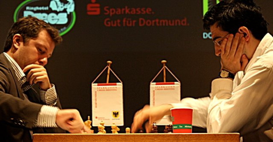 Dortmund (GER) - Ein tolles Turnier für Ruslan Ponomariov! Der schmächtige Ukrainer steht eine Runde vor dem Ende nahezu sicher als Champion des Sparkassen Chess-Meetings 2010 fest und das völlig verdient. Heute genügte ihm ein sicheres Remis im Spitzenduell gegen Shakhriyar Mamedyarov, um seine Führung zu verteidigen. Sollte er morgen gegen Liem Quang Le nicht verlieren, ist Pono gleich bei seiner ersten Teilnahme der lachende Sieger. Le musste heute gegen Peter Leko quasi in die Verlängerung - es wurde sogar eine 119-zügige Seeschlange -, doch er ließ sich vom Schlusslicht der Tabelle nicht ins Bockshorn jagen und erkämpfte letztlich das Remis. Den einzigen vollen Punkt des Tages erzielte Arkadij Naiditsch gegen Vladimir Kramnik. Okay, unter der Lupe war es eher der Russe, der sich mit einem riskanten Figurenopfer selbst umbrachte, doch andererseits verteidigte sich der Deutsche über lange Zeit sehr genau und hatte den Sieg daher auch völlig verdient.