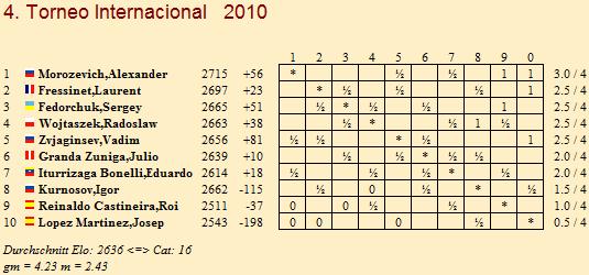 Pamplona (ESP) - Seit dem 24. Juli und noch bis zum 01. August findet das 4. Torneo Internacional A.D. San Juan 2010 statt. Neben einem Open mit 130 Teilnehmern ist das parallele Großmeisterturnier der Kategorie 16 (Schnitt 2636) die Hauptattraktion der Veranstaltung. Viele Schachfans werden auch deshalb interessiert gen Iberische Halbinsel schauen, weil nach längerer Pause endlich wieder Alexander Morozevich am Start und damit zugleich der einzige 2700er im Feld ist. Jedoch ist die Konkurrenz durchaus stark. Neben dem französischen Spitzenspieler Laurent Fressinet ist auch Anand-Sekundant Radoslaw Wojtaszek aus Polen mit von der Partie. Insgesamt treten zehn Großmeister in dem einrundigen Rundenturnier gegeneinander an. Gespielt wird die bekannte Bedenkzeit 90 Minuten/40 Züge + 30 Minuten + 30 Sekunden/Zug ab dem erstem Zug.