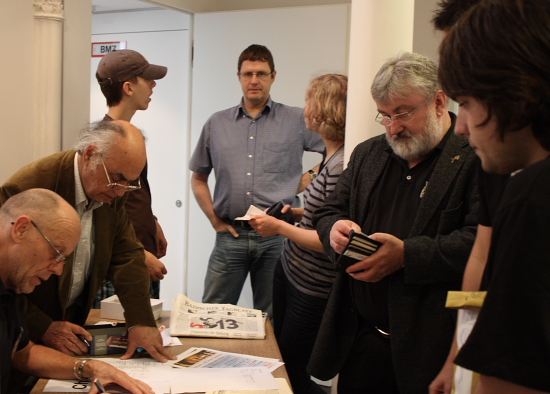 Der Vorsitzende der Chess Tigers Hans-Walter Schmitt bei der Anmeldung