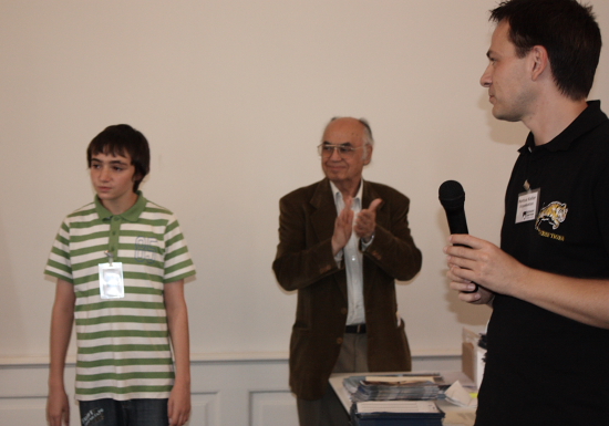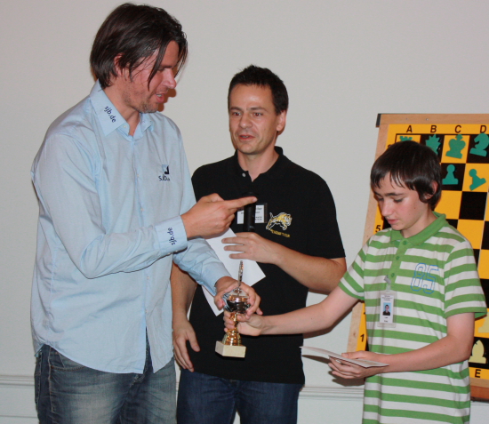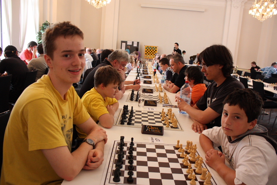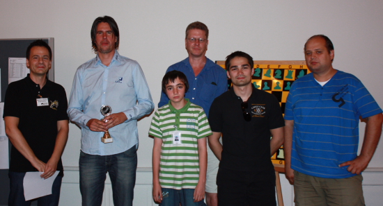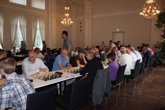14.08.2010 - Schach hat in Baden-Baden Tradition. Wo 1870 das erste internationale Turnier auf deutschem Boden mit zehn Meisterspielern der damaligen Weltklasse ausgetragen wurde, steht heuer ein Schachzentrum, welches bundesweit Symbolcharakter hat. Wer als Austragungsort für Turniere Turnhallen mit quietschenden Böden oder zu enge und dadurch stickige Räume gewohnt ist, kann sich in den großzügigen und sehr stilvoll gehaltenen Sälen des LA8 (Lichtentaler Allee 8) einen staunenden Blick nicht verkneifen. Elegant und doch zweckmäßig eingerichtet erfüllt das Schachzentrum Baden-Baden sämtliche Anforderungen, um auch größere Veranstaltungen wie das aktuell laufenden Sommer-Open mit seinen 214 Teilnehmern zu stemmen. Dort, wo sonst Seminare, Trainings, Schulschach und natürlich die Mannschaftskämpfe der OSG Baden-Baden stattfinden, wurde gestern zum zweiten Mal auch dem neuen Schach eine Chance gegeben. Beachtliche 58 Teilnehmer - davon 10 Titelträger - nahmen an dem Chess960-Open teil, welches in 5 Runden Schweizer System und mit der Bedenkzeit 20 Minuten plus 5 Sekunden ausgetragen wurde. Deutlicher Elo-Favorit war der russische Großmeister Maxim Turov, doch als dieser letztlich zusammen mit GM Mesgen Amanov aus Turkmenistan und dem deutschen GM Sebastian Siebrecht mit 4,5 Punkten das Ziel erreichte, fehlte ihm ein halber Buchholzpunkt zum Triumph. Diesen sicherte sich mit Siebrecht nicht nur der physisch größte Spieler, sondern auch ein Chess Tiger.