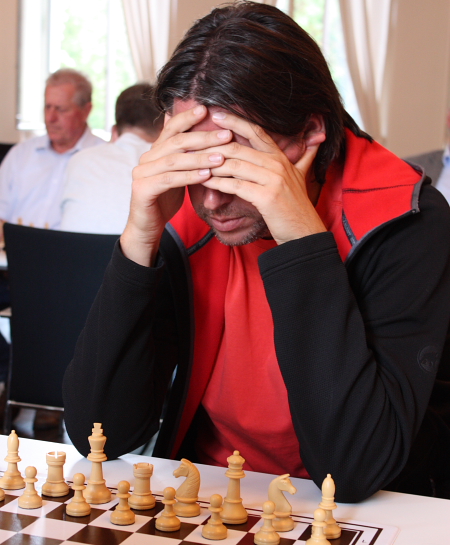 Der spätere Sieger mit vollem Einsatz - GM Sebastian Siebrecht