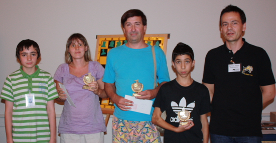 Die Sieger der ersten drei Gruppen eingerahmt von der Turnierleitung