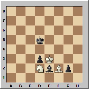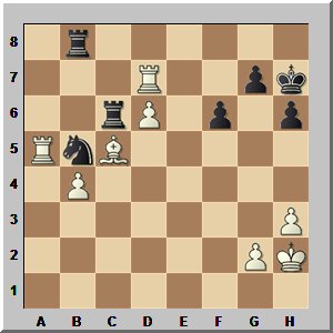 Positionell ist die Messe hier gelesen, denn Weiß musste ja gewinnen, um das Finale in Bilbao zu erreichen. Hier hat er so gerade die schwarzen Freibauern im Griff, aber mehr ist nicht drin. Jetzt kam es auf reine Geschwindigkeit an. Wer würde die Zeit zuerst überschreiten? Immerhin hatte Weiß zu Beginn mal eine Minute mehr auf der Uhr, aber dieses Polster war längst verbraucht. 79.Sg2?? Das verliert. 79...Kc2?? So allerdings nicht!