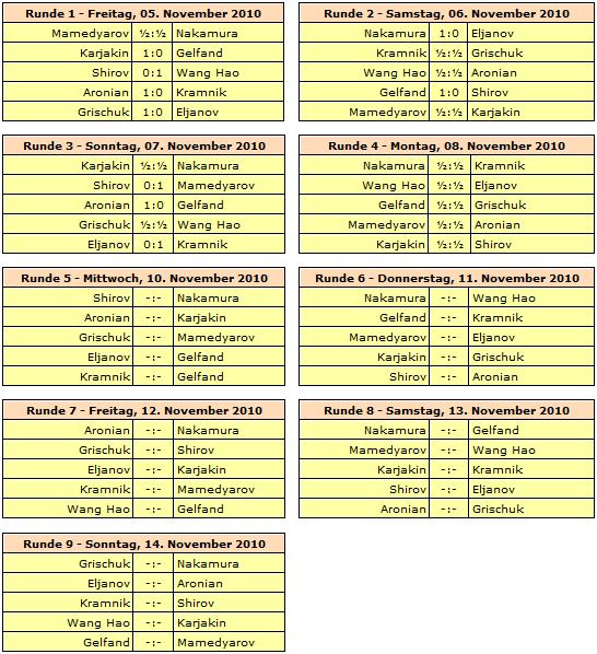 TopTurniere Tal Memorial 2010 - Kämpferische Nullrunde in Moskau Alle Partien remis in Runde 4