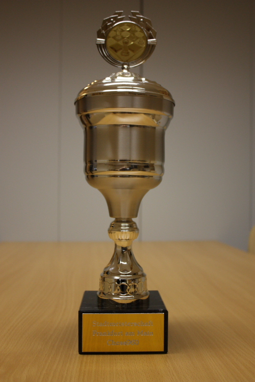 Tja, blöd, wenn der "Fotograf" den falschen Kamera-Modus einstellt - dennoch, mit etwas Anstrengung und Phantasie erkennt man in den Gesichtern der Teilnehmer die Zufriedenheit nach dem Turnier und die Spannung vor der Siegerehrung