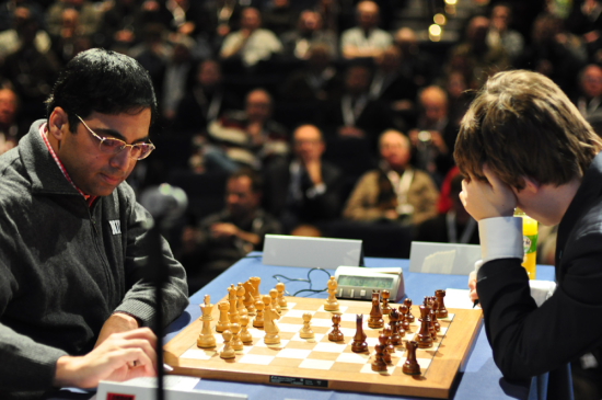 10.12.2010 - Die dritte Runde der 2. London Chess Classic bot erneut extrem spannungsgeladene Partien, obwohl letztlich nur eine einen Sieger fand. Viswanathan Anand opferte gegen Magnus Carlsen früh einen Bauern, aber es schien, als hätte der Norweger danach gute Chancen, Vorteil zu erlangen. Doch er fand in komplizierter Lage nicht die beste Verteidigung gegen die indische Initiative und geriet alsbald auf die Verliererstraße. Doch wie es das Schicksal wollte, der Weltmeister verpasste ein ums andere Mal den klaren Gewinnweg und musste seinen Gegner in einer vorteilhaften Stellung ziemlich lange kneten, bis sich dieser endlich streckte. Zuvor hatten sich Michael Adams und Nigel Short in einer alten Caro Kann-Variante nach einigen Komplikationen friedlich getrennt, und auch Hikaru Nakamura konnte seine offensichtlich vorteilhafte Stellung gegen David Howell nicht gewinnen. Die längste Partie der dritten Runde zelebrierten Luke McShane und Vladimir Kramnik. Zu guter Letzt quälte die russische Nummer 1 seinen britischen Gegenüber im Seeschlangen-Endspiel Turm und Läufer gegen Turm bis zum 139 Zug, bevor er dem Remis zustimmte. Somit führt weiterhin McShane vor den jetzt punktgleichen Nakamura und Anand, wobei der Amerikaner aufgrund seines Schwarzsieges aus der zweiten Runde gegen Kramnik weiterhin Zweiter ist.
