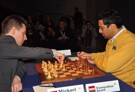 Zwischen Michael Adams und Viswanathan Anand stand der Najdorf-Sizi zur Diskussion, doch keiner konnte entscheidende Vorteile erzielen