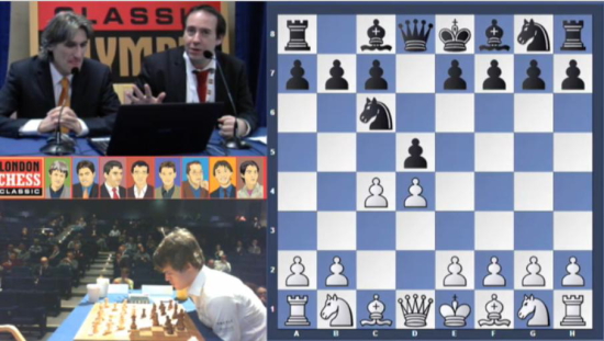 Die britischen Kommentatoren GM Daniel King und GM Chris Ward zeigten sich sehr erstaunt über Carlsens Tschigorin-Verteidigung...