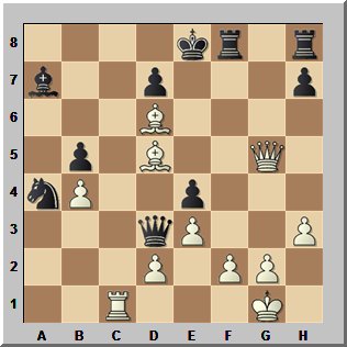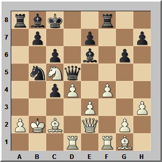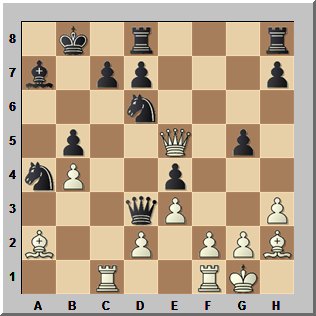 20...Dxb4? hat nämlich 21.Txd6!± zur Folge, da 21...cxd6?? an 22.Dd5+- scheitert, wonach Lxe4 nebst tödlichen Drohungen nicht mehr vernünftig bekämpft werden kann.