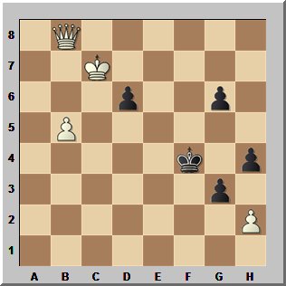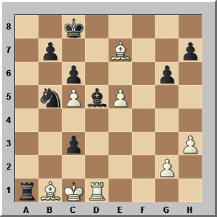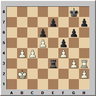 Nun sieht es so aus, als würde Weiß glatt auf Gewinn stehen, denn der b-Bauer hat freie Bahn. 41...h5 Diesen Zug führte Solonar im Glauben aus, den weißen Turm endgültig kalt gestellt zu haben, doch der Schein trügt. 42.b5 e6 43.dxe6 Txe6 44.Ka3?!