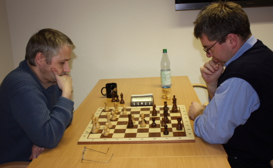 Nur zum Auftakt geriet IM Erik Zude gegen Carsten Kreiling in ernsthafte Verlustgefahr