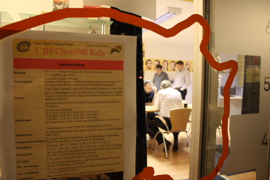Derweil wird morgen (Mittwoch) um 19 Uhr die 1. B9 Classic Rally starten, die im identischen Modus ausgetragen wird, wobei klassisches Schach gespielt wird, oder wie der Chess960-Freund sagen würde: "Thematurnier in der Startposition 518". Nachfolgend noch ein paar Impressionen vom Montag.