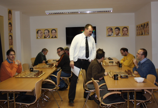 13.01.2011 - Am vergangenen Montag hatte das Chess Tigers Training Center mit der 1. B9 Chess960 Rally die erste von zwei Turnierserien begonnen, und am Mittwoch durften auch die Theoriehaie und Freunde des klassischen Schnellschachs bei der 1. B9 Classic Rally zu den Figuren greifen. Erneut war IM Dr. Erik Zude Favorit, doch im Vergleich zum Montag, war der Schnitt des zehnköpfigen Feldes ungleich höher. Lediglich ein Teilnehmer wies eine Rating unter 2000 auf, und mit IM Stefan Reschke und FM Alexander Armbruster nahmen zwei weitere Titelträger teil. Dennoch, Zude erwies sich erneut als unbesiegbar. Er erzielte 6,5 der möglichen 7 Punkte, wobei ihm keiner seiner Meisterkollegen das Wasser reichen konnte. Den einen halben Punkt musste er in einer hochklassigen Partie Carsten Kreiling (DWZ 2032) überlassen. Gleichwohl hat Zude nun in beiden Rallys die alleinige Führung übernommen, und so stellt sich die berechtigte Frage: Wer stoppt Zude? Sie vielleicht? Dann kommen Sie doch schon am nächsten Montag zum zweiten Turnier der Chess960 Rally und am Mittwoch zum klassischen Schnellschach!