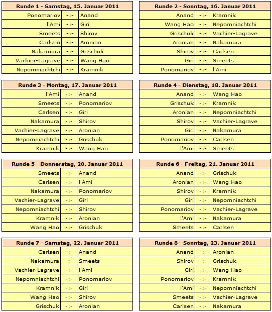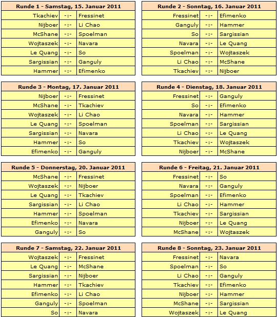 TopTurniere Tata Steel 2011 - Alle Paarungen auf einen Blick... ...und was Sie sonst noch wissen sollten