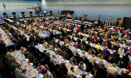 15.01.2011 - Heute ist das Tata Steel Chess Tournament in Wijk aan Zee gestartet, und bei insgesamt 21 Partien in allen drei Gruppen ist natürlich auch eine Menge Blut geflossen. In der A-Gruppe konnten sich gleich drei Spieler an die Spitze setzen. Den Anfang machte mit Jan Smeets einer der Lokalmatadoren indem er in einer Kurzpartie Alexei Shirov schlug. Danach hielt sich Hikaru Nakamura an Alexander Grischuk schadlos, und den Schlusspunkt bei den entschiedenen Partien setzte Weltmeister Viswanathan Anand mit seinem Damenfang gegen Ruslan Ponomariov. Die restlichen vier Begegnungen endeten remis.